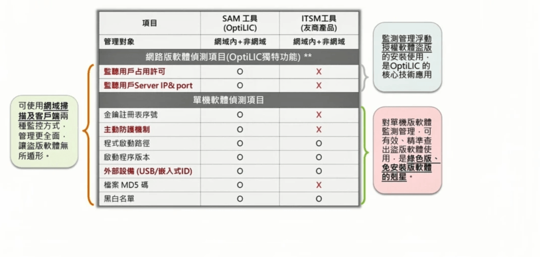 ▸OptiLIC與市面上盜版管理工具之比較